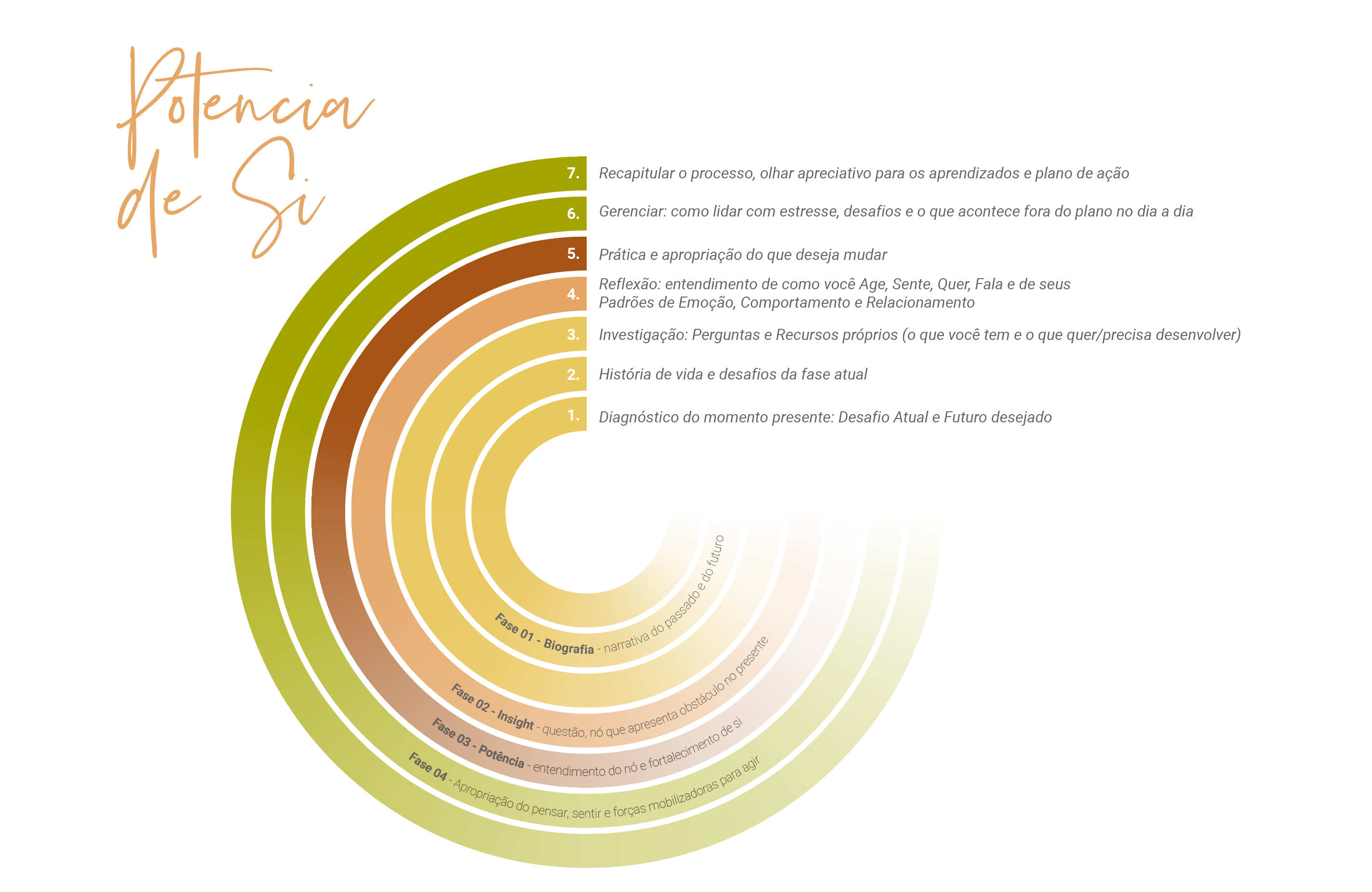 Um novo olhar sobre você, ampliando sua capacidade de observar forças que trazem potência para sua realização no mundo. Desenvolvimento de clareza, autoconhecimento, consciência e gestão das emoções a partir de atendimentos individuais e em grupo com olhar para a sua prática. Trabalhando sua força mental, emocional e corporal para ativar sua potência máxima.